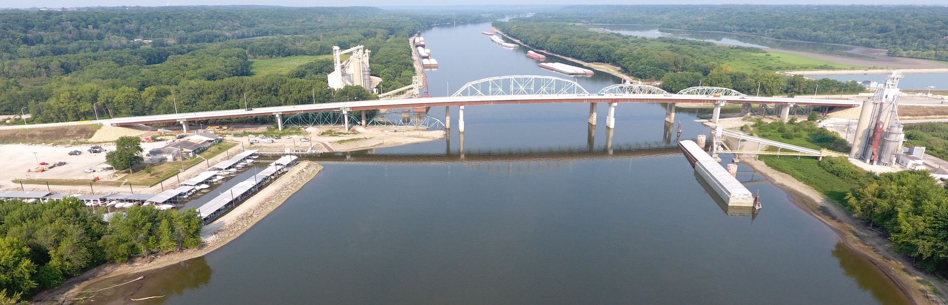 The project included approach work on both sides of the river as well as demolition of the existing bridge. The project is complicated by the limited work space and fluctuating river levels. Several unique aspects of the project included the contractors use of a barge causeway to access the construction area as well as the use of 9’ tall steel girders.
